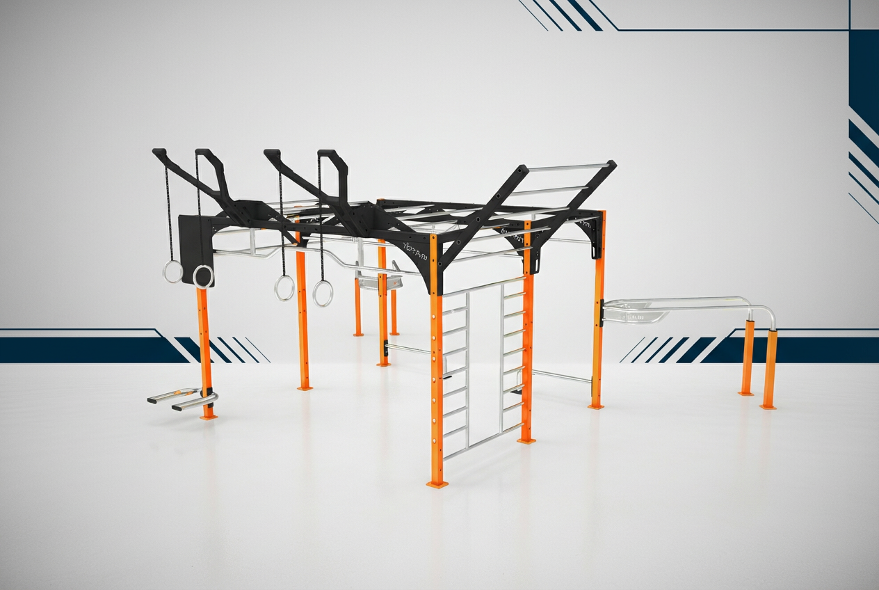 Ausgestattet mit Klimmzugstangen, Dip-Station, Ringen, Monkey-Ladder, Core-Trainings-Modulen und optionalen Zubehörhalterungen bietet der SFS-007 nahezu unbegrenzte Trainingsmöglichkeiten für Functional, Cross und Calisthenics.